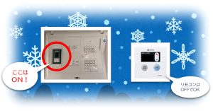 ブレーカーを上げた状態であれば、低温になった場合に給湯器内部の凍結予防ヒーターが